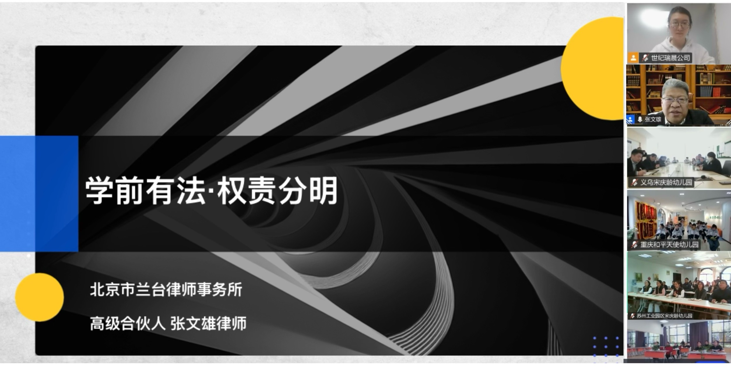 2025年6月1日《中华人民共和国学前教育法》正式施行,为亿万幼儿健康成长提供了法治保障,实现从“幼有所育”到“幼有善育”的历史性跨越。为确保所属幼儿园精准把握法律要求,2025年12月4日,世纪瑞晨公司特邀中国宋庆龄基金会法律顾问张文 . . .查看详细>>