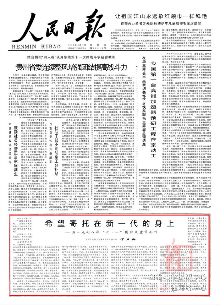 一九七八年“六·一”国际儿童节来到了,在全国人民向社会主义四个现代化进军的响亮号声中来到了。