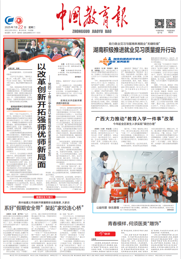 改革中,教师教育体系实现新升级。优化实施“国优计划”,进一步推进教师教育改革,深入实施教师精准培训改革,推动数字赋能教师发展,成立全球教师发展学院,拓展教师国际交流合作路径。